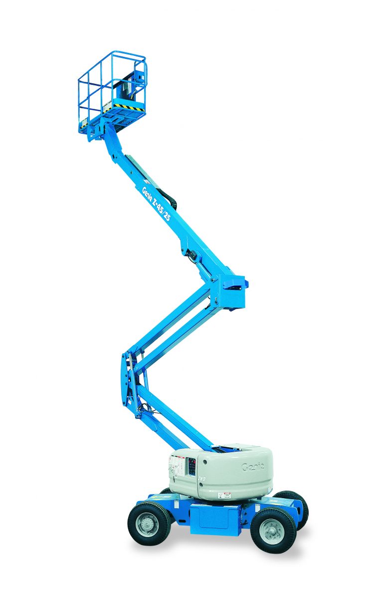商品詳述:GENIE曲臂式Z型人員高空作業車可向上、向下和橫伸的方向延伸,為各種高空作業之工作提供許多的輔助可昇高至13.87~13.92公尺。 |